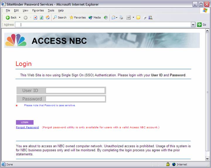 Access NBC or SSO ID, please EDIT